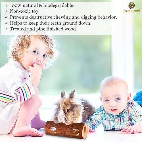Contemporary And Textured Design --- The SunGrow Rabbit chew stick’s design is simply beautiful,and uses rustic elements in a contemporary style. Your bunny will love exploring the textured surface, and peering through the hollow drilled through the center and the various other holes for your bunny to explore.