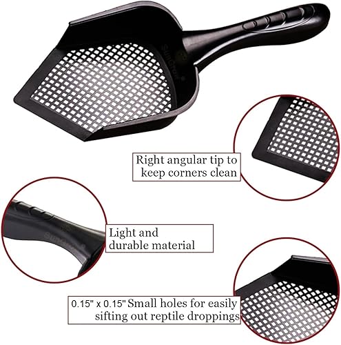 For Optimal Health Of Reptiles And Humans --- Pets like turtles, snakes, lizards, frogs, salamanders, and caecilians carry maladies that may make people sick. This usually occurs due to improper housing and care. Maintaining a clean terrarium helps reduce this risk. Tidying up your pet’s enclosure is now made easy by Terrarium Reptile Litter Scoop by SunGrow. It can scoop out tiniest particles well. It is perfect to use for beddings and substrates as it quickly takes away droppings.