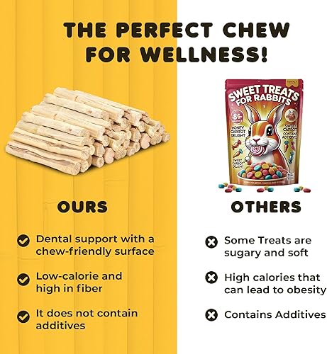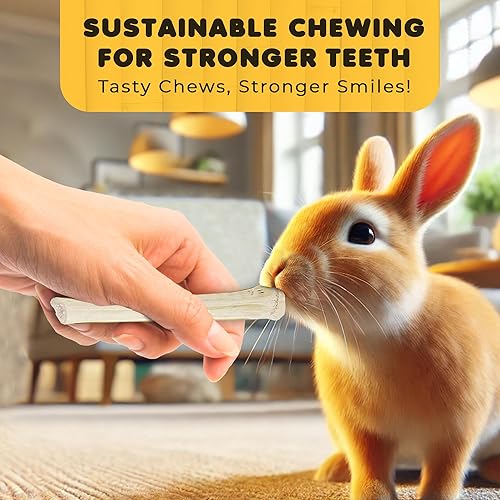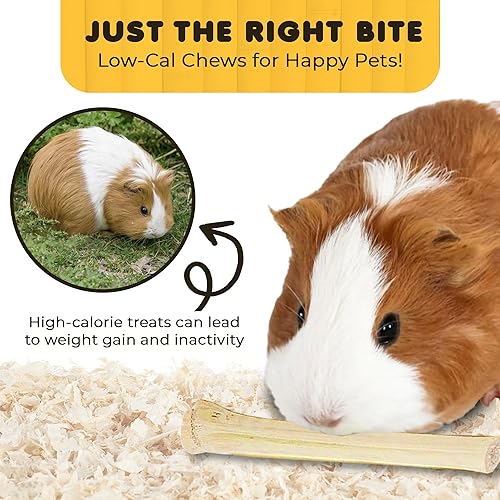 Encourages positive oral routine --- Veterinarians around the world recommend giving your small caged pets wood chews to keep their teeth trim, and in top shape. The crunchy fiber treats help in maintaining an oral routine and keeps long teeth (such as the incisors on rabbits and guinea pigs) trimmed, restricting painful overgrowth.