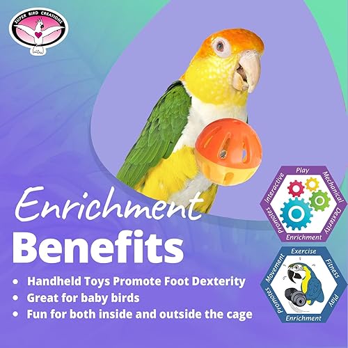 ENRICHMENT BENEFITS - Providing foot toys promotes good foot dexterity as well as an excellent outlet for fun inside and outside the cage. Create a "toy chest" out of a cardboard box or empty dish to store hand toys in the bottom of your bird's cage.