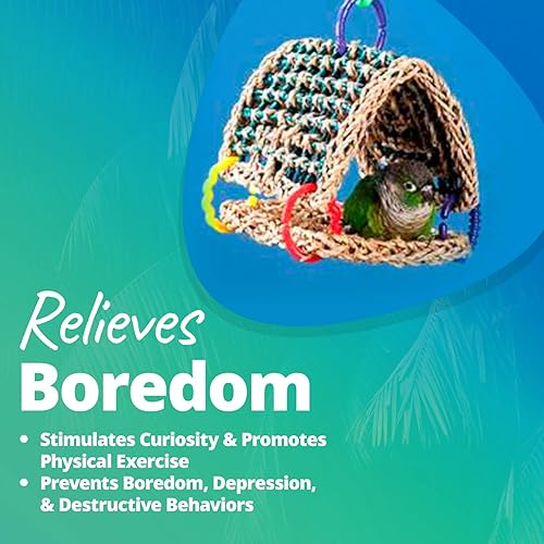 ENRICHMENT BENEFITS - the Seagrass Tent bird toy is designed to not only entertain but also to provide a alternate perching surface and hide-a-way for pet birds. Your bird will enjoy peeking out of this chewable "see-thru" shelter that will provide a sense of hanging out in the jungle canopy.