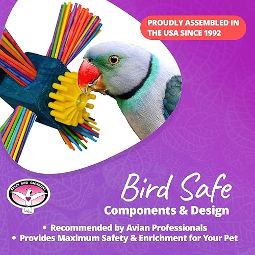 ENGAGES AND STIMULATES: The Super Bird Creations toy is expertly designed to captivate your parrot's attention. It provides mental stimulation and physical activity, effectively tackling boredom and promoting a happier, healthier bird. This approach also helps in alleviating symptoms of depression, aggression, and destructive tendencies in birds.