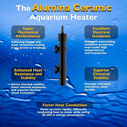 ALUMINA CERAMIC - Crafted from high-quality alumina ceramic, this betta heater delivers unmatched durability, exceptional mechanical strength, and superior heat and chemical stability. Its advanced electrical insulation and rapid heat conduction ensure efficient heating while saving 20-30% energy, creating a stable and energy-efficient habitat for your fish!