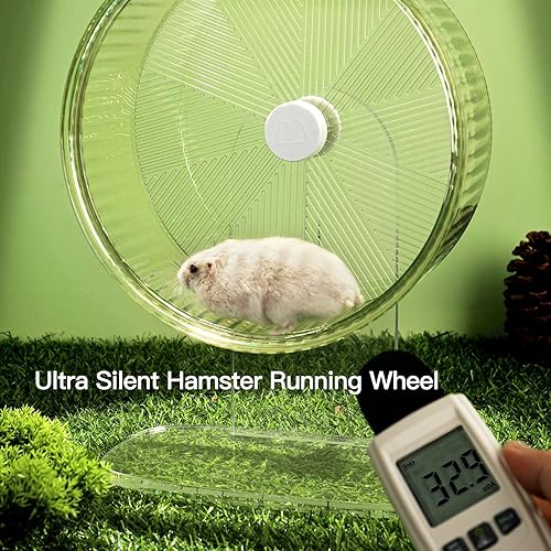 Ultra-Quiet Hamster Exercise Wheel: Uses V3-grade double ball bearing design to ensure the wheel glides smoothly and silently. Equipped with a cork pad, it effectively reduces friction and noise during running. It brings endless running joy to your hamster while ensuring a quiet night for you, even when your hamster is running on the track and the wheel is spinning