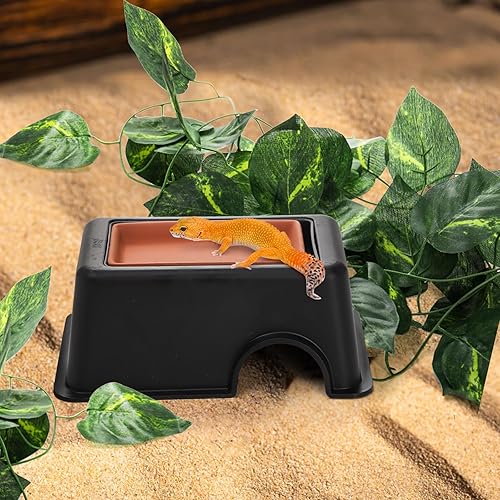 Safe Material: Reptile hiding box is made of high quality plastic + ceramic materials, delicate texture, matte surface, ensuring durability and longevity. Impurity-free stoneware sink, moisturizing and helping peeling