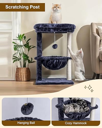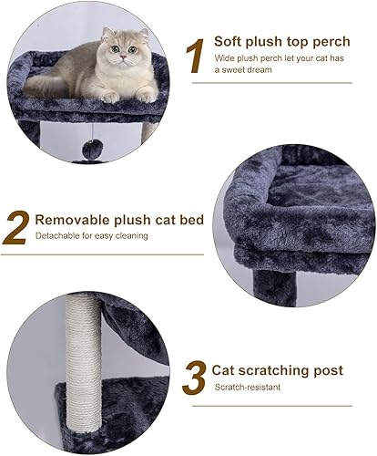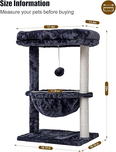 [Easy to Assemble] This cat tower easy to put together with detailed graphic instructions. Overall dimension - 16.15” L x 16.15” W x 26” H. This cat play tree in classic design will decor your room as a piece of modern cat furniture