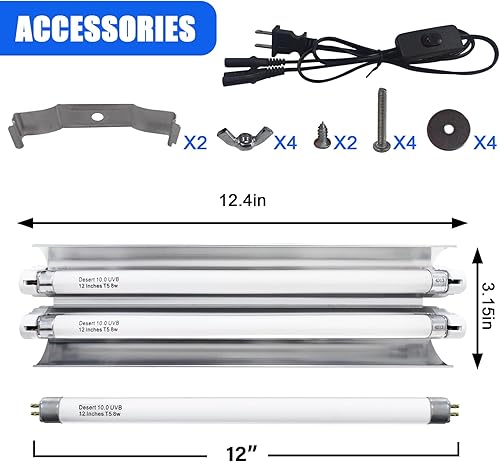【T5 8W UVB 】Our T5 UVB bulb have Long lifespan of 10000 hours. For better performance, Replace the bulb every 6-9 monthes