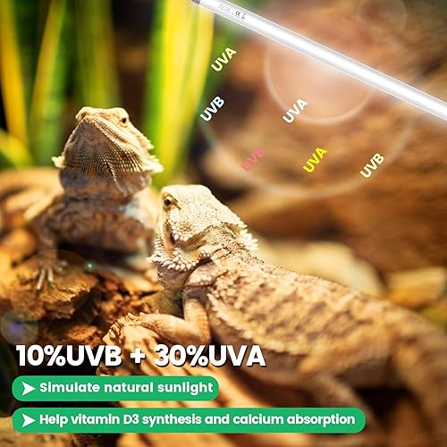 Simulates Natural Sunlight: High-output UVB T5 lamps provide essential UVB, UVA, and visible light for reptiles, promoting calcium absorption, enhancing appetite, and preventing metabolic bone disease, which helps them better adapt to captive environments and grow healthier