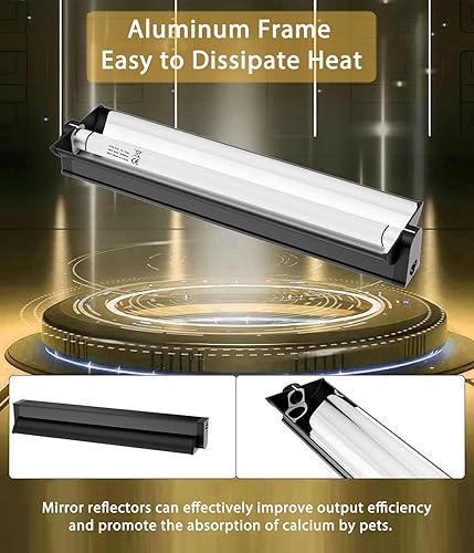 [Military-Grade Reflector]: Curved alloy reflector with 95%+ reflectivity amplifies UVB radiation by 2X. Patented heat-dissipation aluminum housing maintains optimal 104-113°F basking zone, extending bulb lifespan to 5,000+ hours.