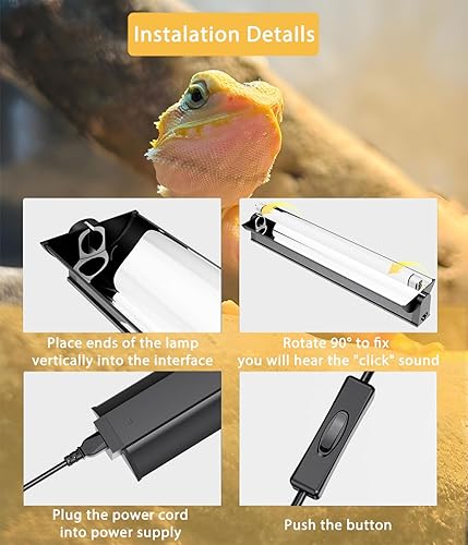 [T5 UVB Reptile Light]: It can be used for a long time with confidence, and the width of the lamp is widened to increase the effective exposure range for animals; Black oxidation resistant spray coating, atmospheric, fashionable, not easily discolored and aged after long-term use.