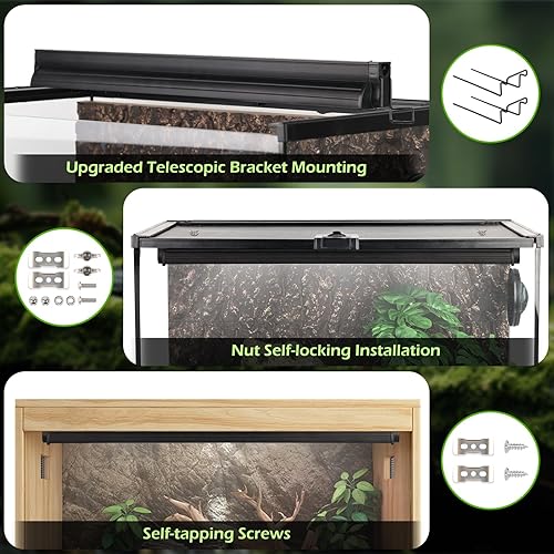 Easy Installation: the terrarium light has 3 ways to install, nut self-locking installation, self-tapping screws, and an upgraded telescopic bracket mounting (24W is 23-30" terrarium, 8W is 11.8-19.7" terrarium)