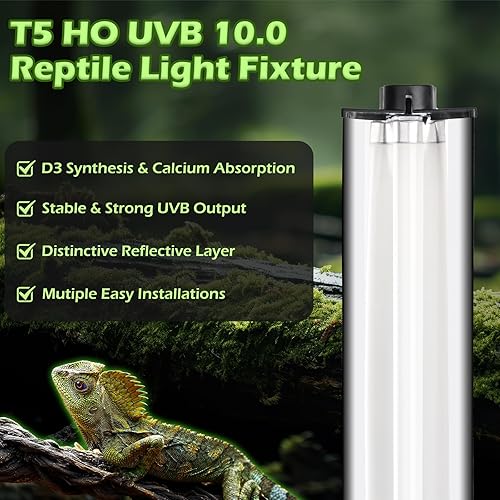 T5 UVB Reptile Light: Aiieim t5 10.0 uvb reptile light is a highly polished design to emit the necessary UVB and UVA rays, promoting vitamin D3 synthesis, preventing diseases and promoting calcium absorption of reptiles such as bearded dragons, tortoises, geckos, lizards, snakes, chameleon and others, keeping your pet healthy and full of energy