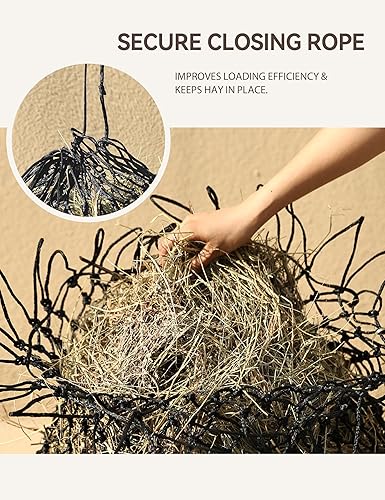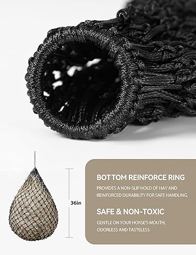 Safe and Non-Toxic, Long-Lasting Color: Made from high-quality polymer materials, this hay bag is non-toxic and tasteless, ensuring it won't harm your horse's mouth. The material features vibrant colors with strong color retention that won't fade easily. These hay nets for horses are highly resistant to wear and tear, making it durable and difficult to damage even with long-term use.