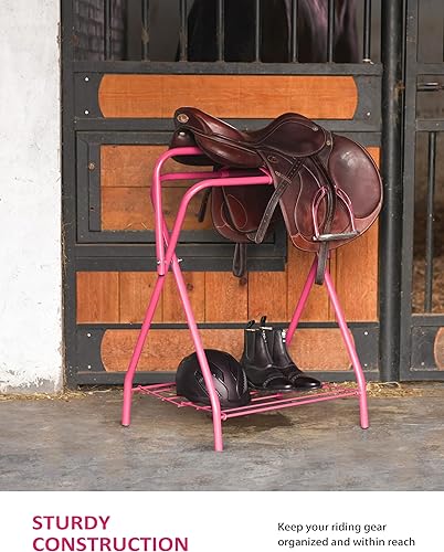 Multi-functional Storage: Includes built-in hook for holding bridles, reins, bottom storage rack is designed for holding grooming tools, riding boots, or other rider gear, keeping your tack organized in one spot.