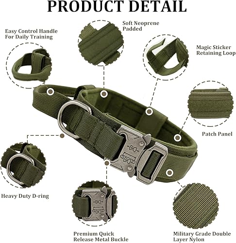 【Multi-Purpose Dog Collar】Our Military Dog collar is great for dog training, patrolling, hiking, working, walking, running, and hunting,designed to fit medium-sized and large-sized breeds.Before purchasing, Please measure your pet or working dog's neck with a soft measuring tape or piece of string to get the most accurate measurement.