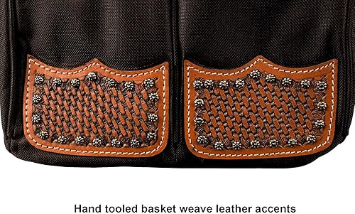 GENUINE LEATHER ACCENTS - this carry bag is accented with hand-tooled basket weave leather on the corners for a high-class, classic western look