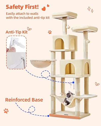 Structural Ideal Design:This cat tree with super luxurious multi-layer structure design is a dream apartment for big cats. Designed according to the climbing habits of cats, the five-story cat tower has enough space for cats to climb, meantime can also be a playground for multiple cats.