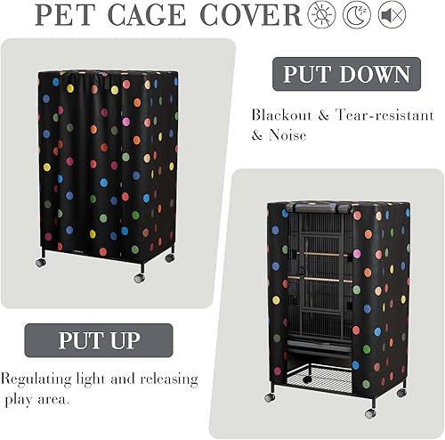 Upgraded BirdCage Cover Material-The Cover mades of 210D encrypted waterproof PU coated oxford cloth. The Cage Cover uses breathable, durable and non-toxic polyester shading fabric with water-resistant coating. It can block more than 90% of sunlight and ultraviolet rays,reducing the anxiety of your pet. The birdcage cover has neatly seamed edges and an overall beautiful appearance.