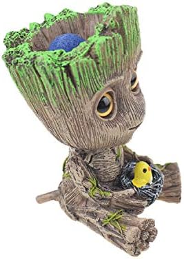 SIZE-- Groot Height about 10cm( 3.9 inch), Max.diameter of pot mouth is 4cm ( 1.57inch)Attention: If you find out the deco cannot sit straight in the water, most of time because it contains some air with it. Put it under water for about 15 mins, let the air come out and absorb some water into it. Try again.