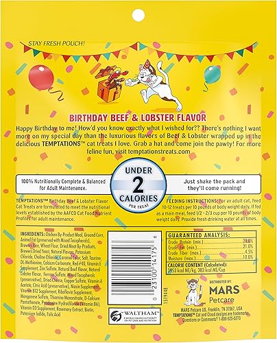 Under 2 Calories Per Treat: Each cat treat is under 2 calories and 100% complete and balanced for adult cats, so you can feel good about celebrating your cat on their special day