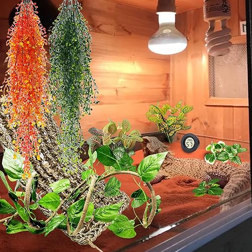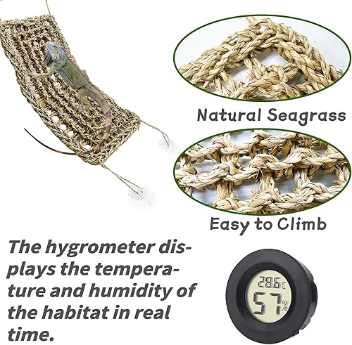 【Convenient Usage】The lizard hammock and terrarium plants can be easily secured by suction cups. The hygrometer displays the temperature and humidity of the habitat in real time. Suitable for most reptiles and amphibians, such as bearded dragons, geckos, lizards, snakes, frogs, chameleons and more.