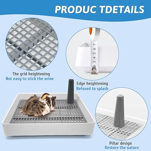 RAISED GRID DESIGN: The guinea pig litter box has a grid size of 0.4 x 0.4 inches; feet won't get stuck in the grid; droppings fall smoothly to the bottom; high weight capacity; prevents pets from touching their own droppings; easy to clean up; avoids pets from feeling nauseous and soiling their feet; all the edges are raised to the right size; ensures that small animal droppings and urine won't fall outside of the rabbit bedding tray