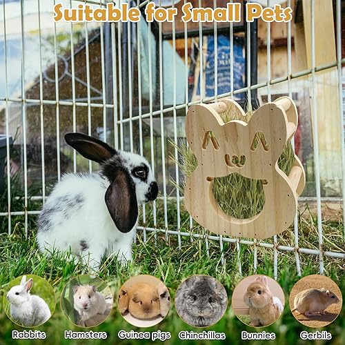 EASY TO CLEANING: Cleaning this natural and safe hay holder for rabbits . Simply discard unused food, wipe clean with damp cloth and mild detergent. Wipe off again with a clean moistened cloth to r-emove any residue left. Dry fully prior to returning it to your pet’s hutch