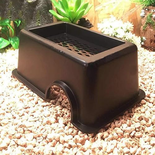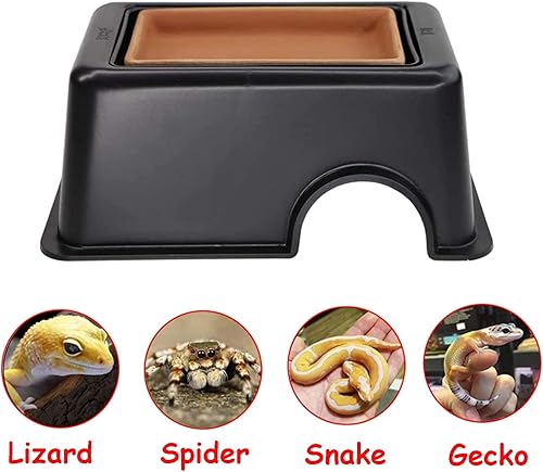SAFETY MATERIAL: Advanced plastic material, exquisite texture, matte surface, no impurities. Gecko skin box comes with a coarse pottery basin that is free of impurities, and easy to clean. Lightweight, it is a small reptile hiding box that is easy to carry anywhere