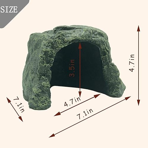 【Size】The external dimension of the tortoise shelter is approximately 7.1 x 7.1 x 4.7 inches /18 x 18 x 12 cm, and the internal dimension is approximately 4.7 x 4.7 x 3.5 inches /12 x 12 x 9 cm. The reptile cave is suitable for reptiles up to 6 inches long, such as turtles, geckos, small lizards, tortoises, axolotls, tree frogs, tarantulas, scorpions and other small amphibians.