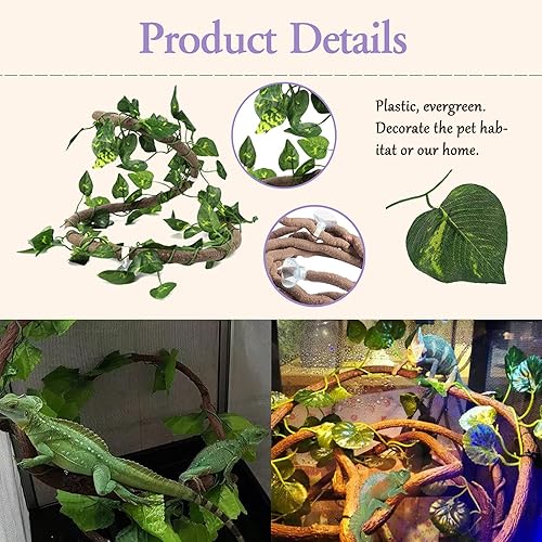 【Green Decoration】 Reptile bendable rattan and leaves are made of plastic, which can decorate the pet's habitat and serve as a good match for the turtle shelter. Please note: Rattan and leaves should not be soaked in water.