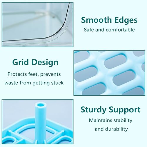 【Comfortable Experience】 With a low entrance design, guinea pig litter box is designed to be easily accessible for your pets. They can enter and use guinea pig litter box without any hassle. Detachable grid is made of plastic materials with a smooth surface that won't hurt your pet's feet.
