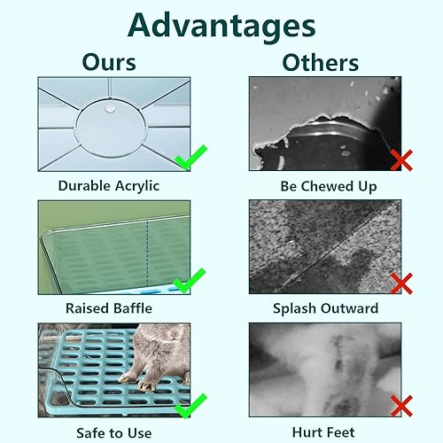 【High-Quality Materials】 Our bunny litter box is made of high-quality acrylic materials, resistant to biting and not easily damaged. This ensures the durability of your small pets while they use the bunny litter box.