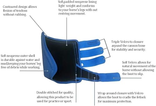 Horse Wrap around closure with Velcro allows the boot to cradle the fetlock for maximum protection.
