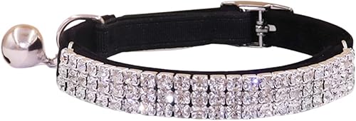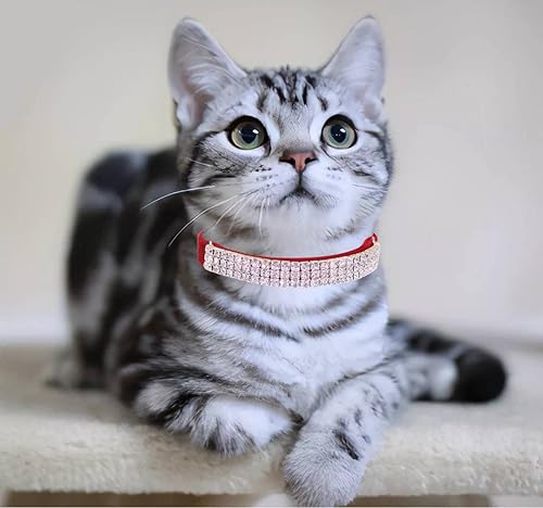 【Material 】the rhinestones bling collar is mainly made from velvet with cozy feeling, not easy to break and will not easily scratch your cat, soft and lightweight provides comfy wearing experience