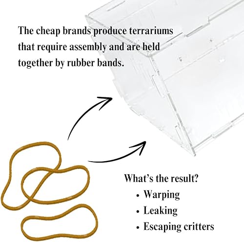 Comes with sealed walls and base, making a strong, durable design. Unlike many other terrariums, this one isn't held together with rubber bands. No gaps, no leaking, no escaping, no assembly required.