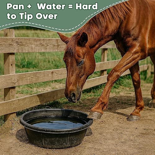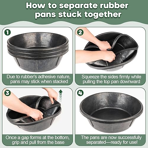 Stackable & Farm-Smart Storage: The feed pans nest neatly to save barn space. If they stick together, just press both sides and lift to release—thanks to flexible rubber, they won’t crack under force. Stack, grab, go—it’s built for real farm work