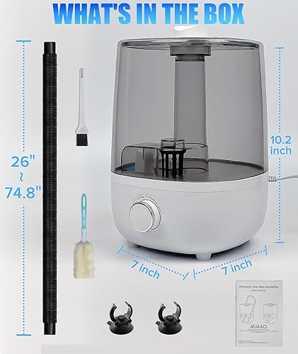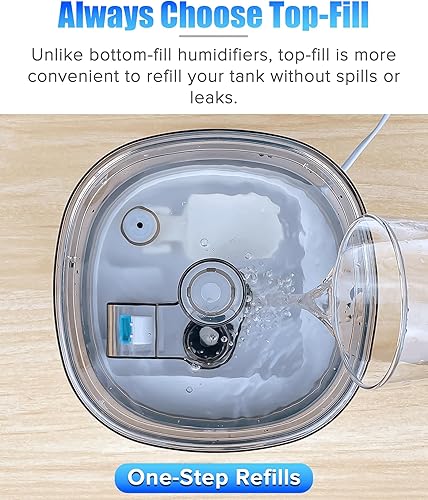 【Top filling & Easy clean】 The lid can be removed easily for cleaning or filling, it is easy to add water from the top instead of turning over the tank. The large opening makes it easy for refilling and daily cleaning of every corner to last the lifetime . Please clean the humidifier regularly every month.