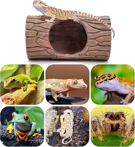 The reptile cave features hollow tree trunk shape and texture, simulates the natural habitat environment, encourages your pet natural climbing and exploration, perfect for lizard, crested gecko, spider, chameleon, frog, hermit crab and other arboreal pets