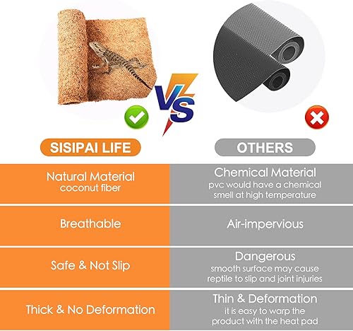 PROTECT YOUR PET & PROVIDE COMFORTABLE HABITAT: It can provide safe habitat and protects reptiles from moisture, dirt, and scratches. Lizard can sleep on coconut fiber mat to prevent ascites. Coconut substrates prevent skin decay for reptiles, better protect your reptile limbs, and allow reptiles to enjoy the natural mat. It provide a super comfortable and safe habitat for your pet to lay down and rest
