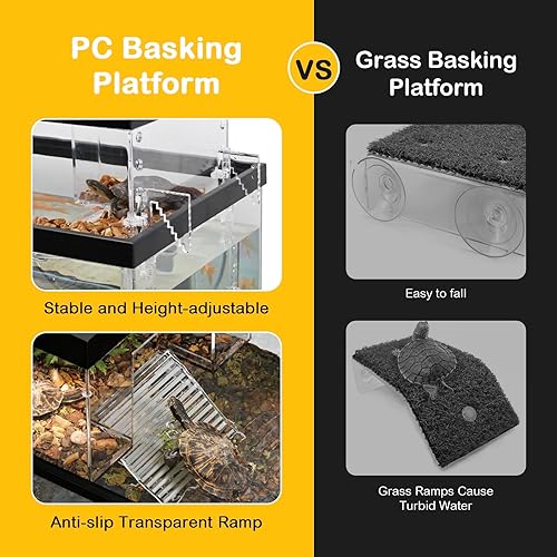 Keeps Tank Clean: The surface is free from impurities, unlike traditional water grass ramps, helping to maintain water clarity and promote your turtle's health. The ramp is designed with high and low bumps and grooves for better slip resistance