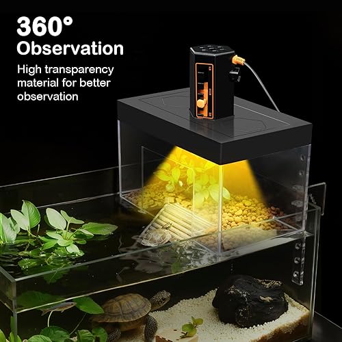 Never break: Made from a high-hardness tempered PC, this turtle tank with lid is durable and safe. The material is shatter-resistant and resistant to yellowing, ensuring long-lasting performance. It complements the overall aesthetic of the tank setup