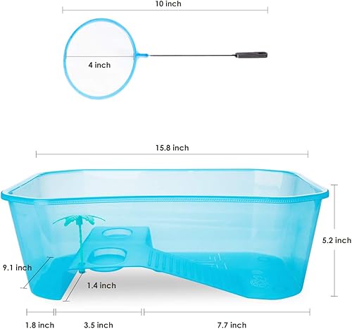 Size: Reptile tank is 15.8 x 9.7 x 5.2'' , which could holds 5 gallons of water, provides a interesting diving area for the turtle