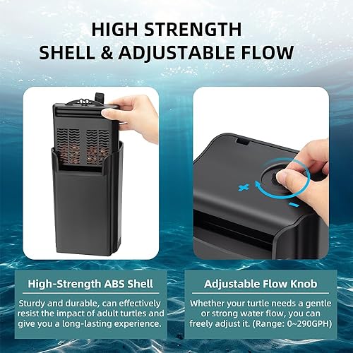 【HIGH STRENGTH ABS SHELL & ADJUSTABLE FLOW】: Don't underestimate the power of an adult turtle, but you won't have to worry about that when you choose DaToo! High-strength ABS shell is sturdy and durable, which can effectively resist the impact of adult turtles and give you a long-lasting experience. Adjustable flow knob can easily meets your turtle's requirements for water flow precision. Whether your turtle needs a gentle or strong water flow, you can freely adjust it to give your beloved turtle pet a comfortable home!