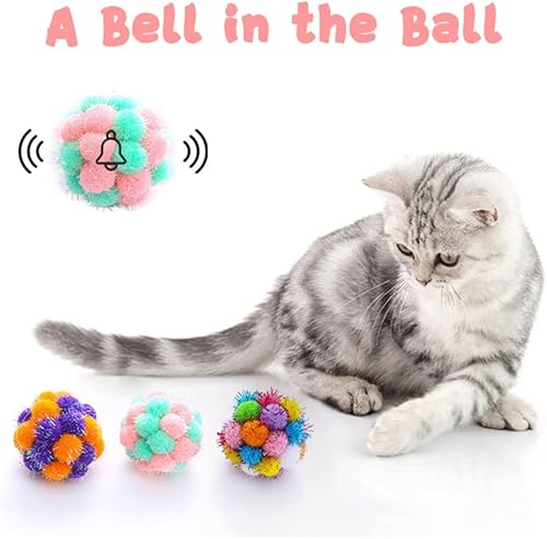 【Eco-Friendly Fuzzy Cat Balls Toy】The cat balls are made of high quality plush, super soft lightweight. Safe for kitten to bite and play.the overall fluff ball is composed of colorbright glitter cat toy balls.It's very beautiful also is a good idea for home party decorations