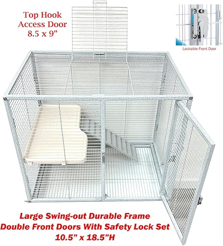 【Large Durable Frame Front Doors】 (10.5" x 18.5"H) With Improved Safty Lock 【Paw Safe】 Adjustable and Washable Solid Platforms and Anti-Slip Ramps 【1 x Hammock With Cage Hook Included】