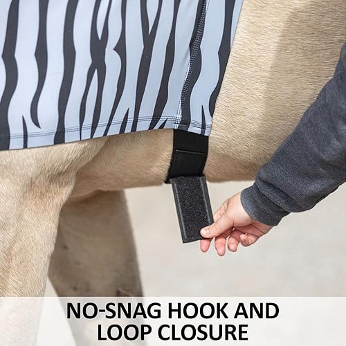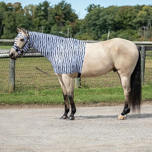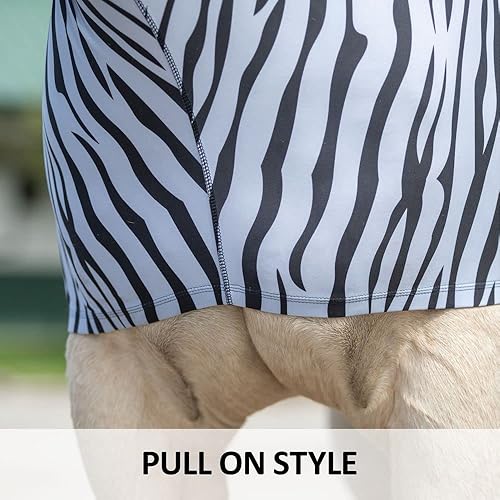 Color Zebra | Size Medium - Constructed from 8oz 4-way stretch lycra, this zebra print horse slicker hood not only offers unparalleled comfort and freedom of movement but also keeps your horse looking chic while potentially deterring flies.