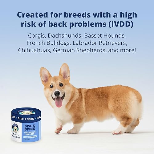 Perfect for Breeds Prone to IVDD: Tailored for long-backed breeds like Dachshunds, Corgis, and French Bulldogs, these chews support dogs at higher risk for IVDD, a degenerative disc condition. Great for back & joint arthritis, ease back pain, improve mobility, and help prevent painful spinal issues common in these beloved breeds.