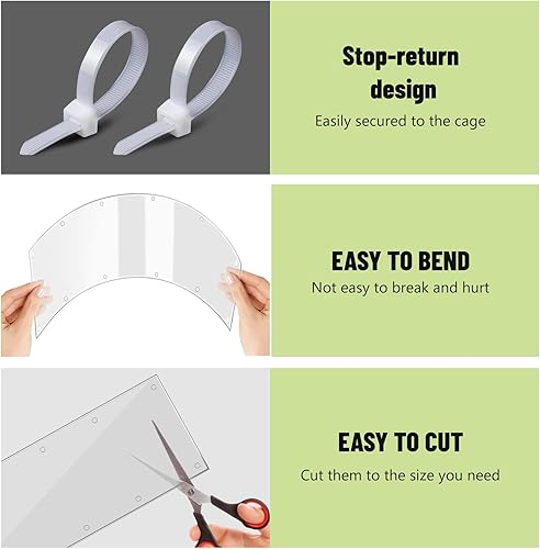 Easy to Use: Both sides of the urine guard sheet come with protective films, please peel before use. Every sheet has 12 holes. The urine barrier has a sufficient number of holes and bunching strips to fit any size cage. It is very flexible, easy to bend, and can be cut to the size you need.