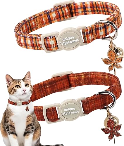 ♥ Unique style paws design ♥ : Colorful flowers/blue-green banana leaves/playful dots/elegant squares, Unique style paws cat collar is cute and fresh, specific style design for all cute cats, boy & girl pets