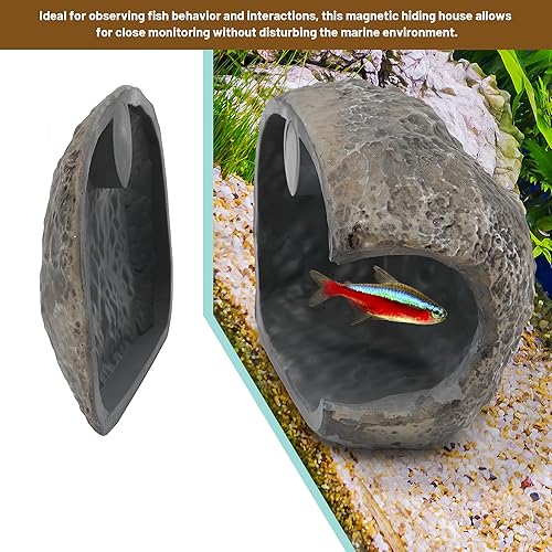 CLOSE OBSERVATION: Ideal for observing fish behavior and interactions, this magnetic hiding house allows for close monitoring without disturbing the marine environment. The sleek and seamless integration of the house into the tank creates a harmonious underwater landscape, enriching the visual experience and promoting a healthy ecosystem.